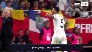 体育资讯04月27日讯 国王杯决赛皇马2-3不敌巴萨,据相关视频和世体的赛后报道,贝林厄姆赛中怒喷裁判,中场休息时也表达不满。